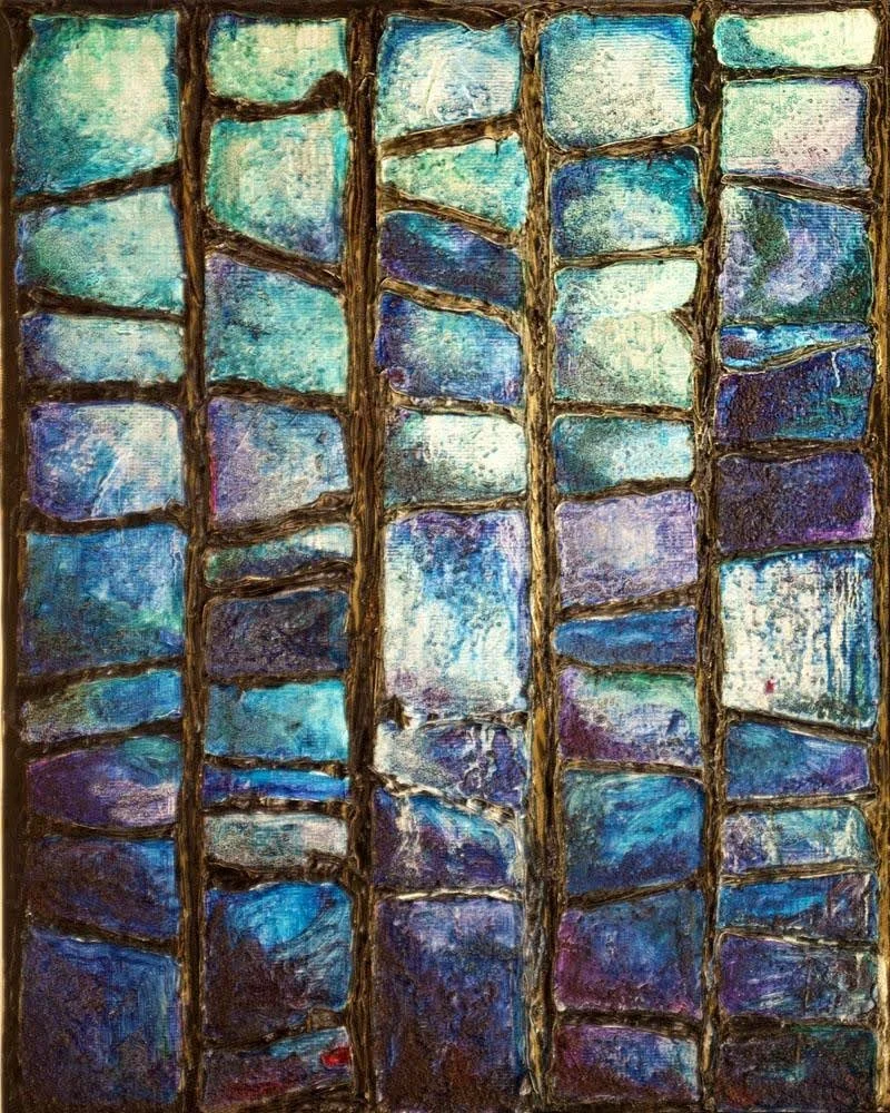 Upon my return, I spent a year searching for a way to achieve such luminescence with oil paint. Intuitively, it was clear I needed to work on a reflective surface. However the reflective surface presented many technical problems, starting with supporting the fragile aluminum by adhering it to canvas. Next, how to fix oil paint and glass bead medium to aluminum. Which colors? Which brands? Extensive testing revealed which oil colors would present transparent on aluminum (surprisingly, some transparent paints become opaque on aluminum). Finally, finding a protective coating that adhered.